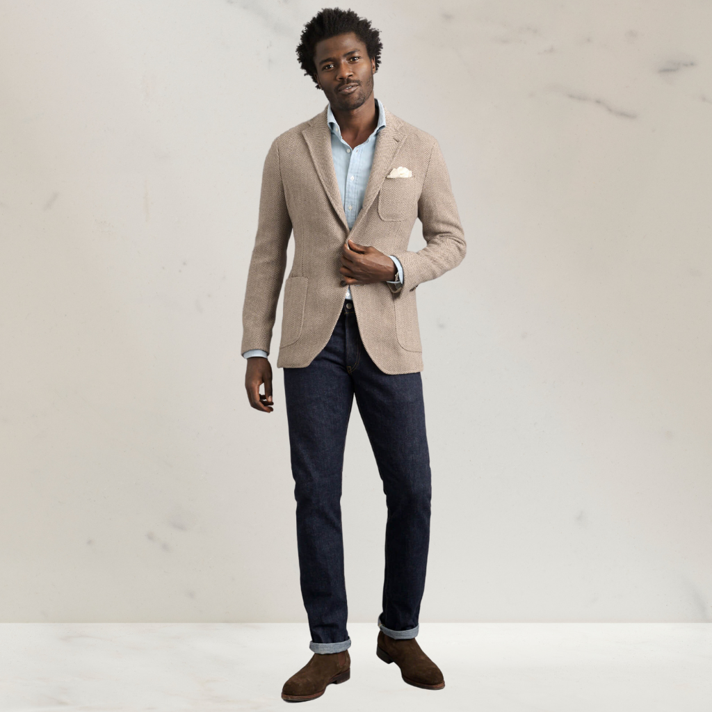 Beige Herringbone Tweed Jacket