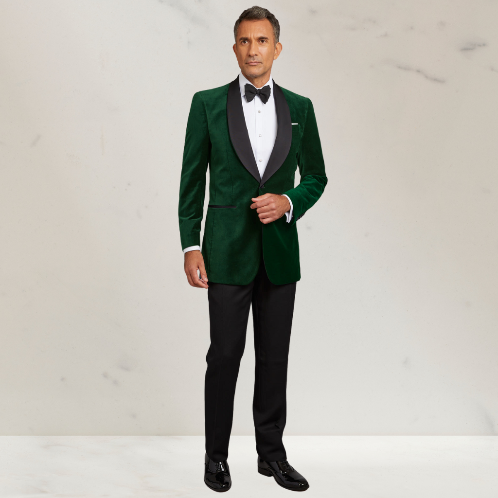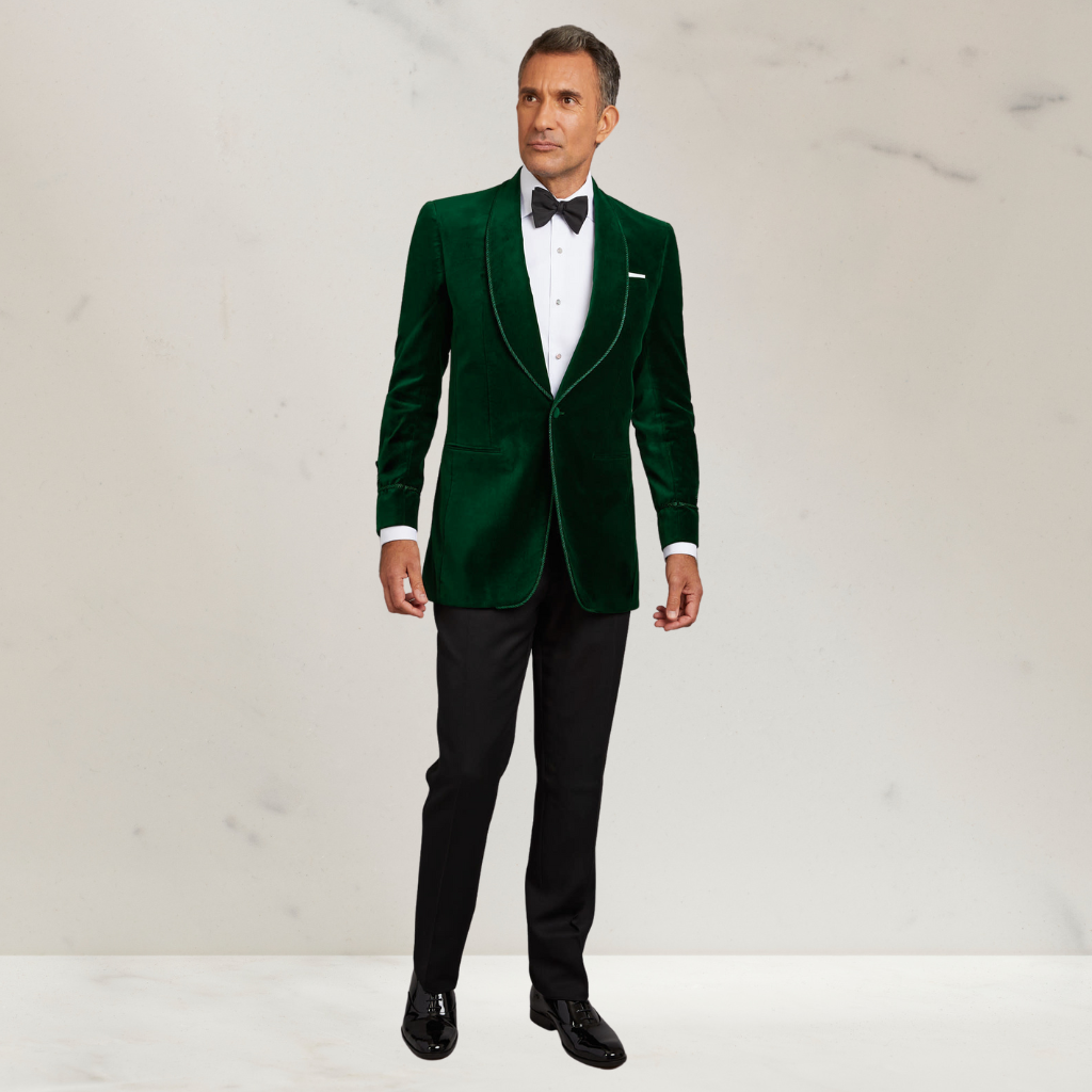 Green Shawl Collar Smoking Velvet Jacket